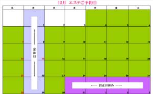 12月のエステご予約可能日のご案内です。 2025.12.01 12月になりました 今年も残り1ヶ月💦 あっという間に1年が終わりますね 12月はクリスマスセールを開催します。 どうぞお楽しみに♡ 2日(火)3日(水)は理奈子不在のためエステルームはお休みです。 彩ママが一人で頑張ります! 年内は30日まで営業します。 どうぞ 1年のお疲れを癒しにきてください☆